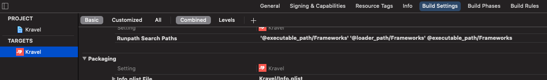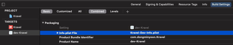 생성한 Target의 Build Settings -> Packaging에서 본인이 변경한 이름으로 똑같이 변경을 해주세요!