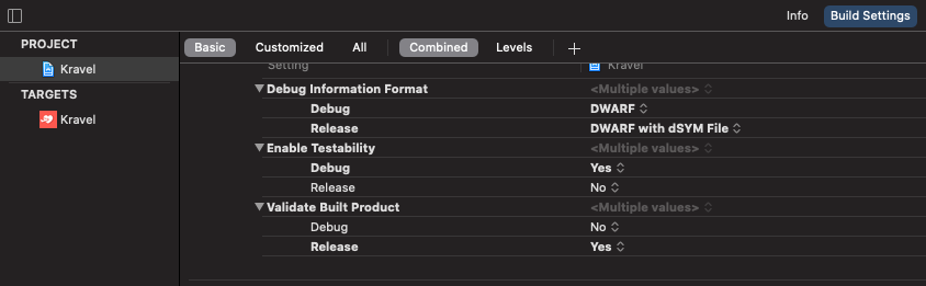 A. 애플 개발자 문서에서 찾아본 바로는 기본적으로 Target이 Project Build Setting을 상속받는다고 합니다. 즉 그렇기 때문에, Override를 이용하여 Target별로 설정을 다르게 해줄 수 있습니다.