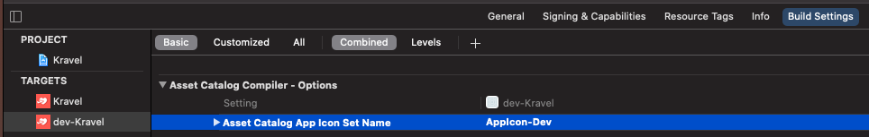 이렇게 생성한 Target을 선택하고 Build Settings에서 새롭게 생성한 AppIcon에 대한 Asset 리소스로 파일을 설정해주세요.