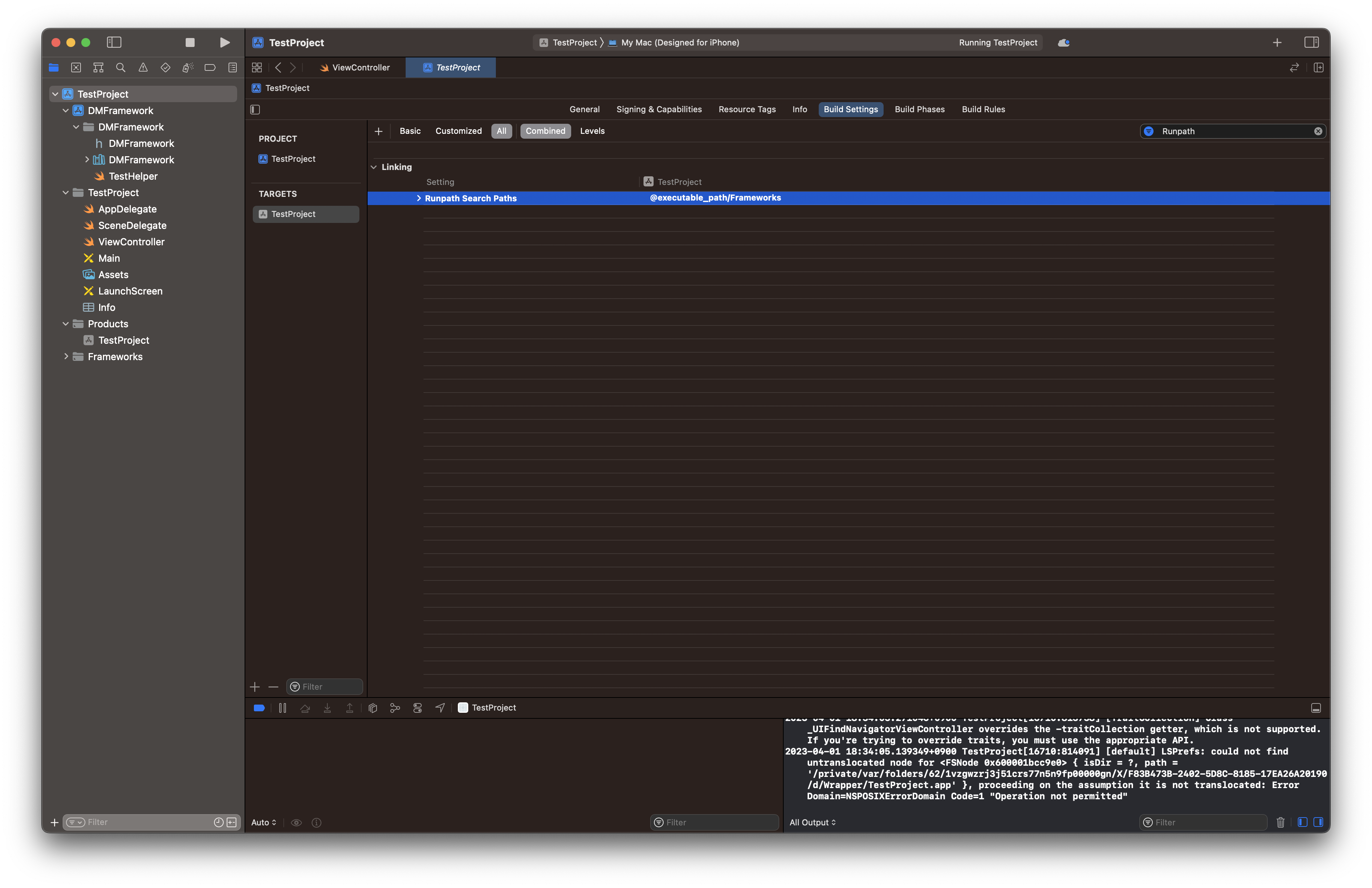 - Dynamic Framework의 Linker가 Framework의 레퍼런스를 찾는 위치는 @rpath(Runpath Search Path)로 프로젝트의 설정에서 확인가능합니다.